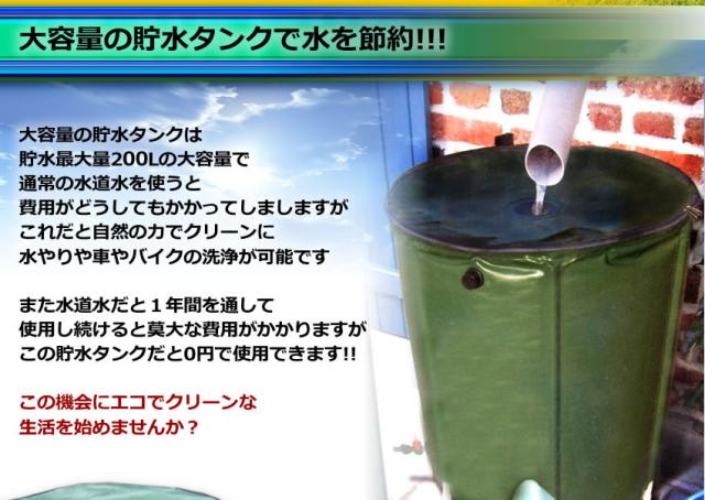 大容量の貯水タンクは貯水最大量200Lの大容量で