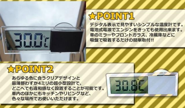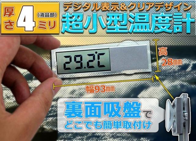 デジタル温度計 超小型 電池式 デジタル 厚さ4mm 車内温度 温度計 吸盤 小型 おしゃれ クリアデザイン 簡単設置 車内 キッチン 透明 クリア コンパクト 軽量設計 見えやすい 車に おしゃれ シンプル 温度管理 車 キッチン リビング 室内 K-036