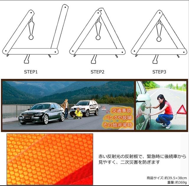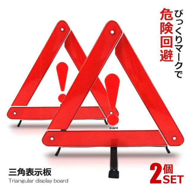 三角表示板 反射警告板 三角停止表示板 車 反射板 警告版 2個セット セキュリティ 二次災害 三角表示 カー用品 緊急 反射板 緊急時 非常時用 車緊急 対応用品 災害対策 組立 コンパクト 収納BOX付き 折り畳み式 見えやすい 築きやすい もしもの時 安心 KEI