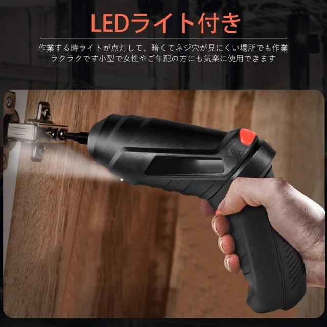 【小型軽量&多用途】小型でコンパクトの電動ドライバーは、グリップにはラバー加工で、滑り止め、しっかり握ることができ、様々な場合に利用できます。片手で操作することができます。木材・アルミ金属などの加工も適用します。(※注意:厚く硬い金属や壁など場所に利用しないでください。)