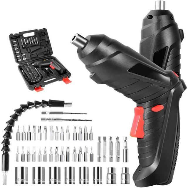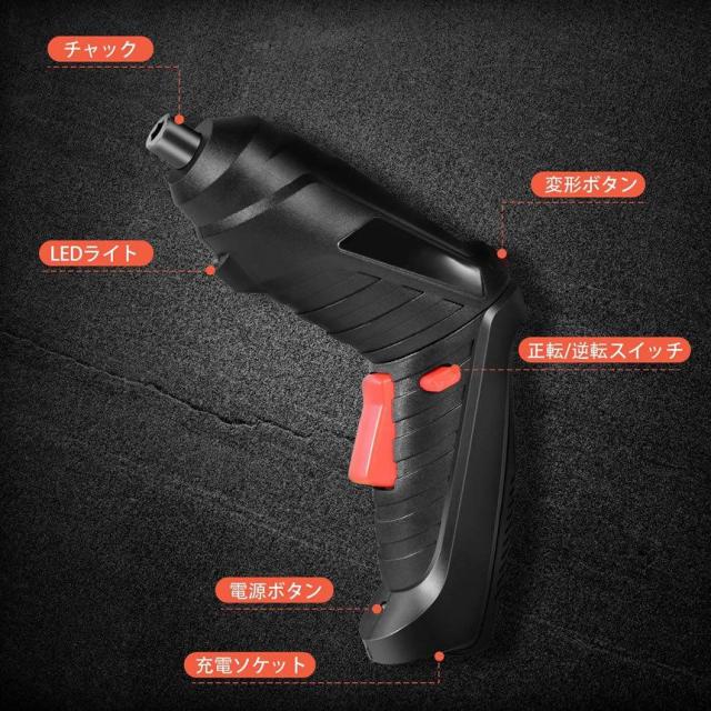 電動ドライバー 電動ドリル 小型 セット 工具セット 家庭用 穴あけ 充電式 初心者 47本ビット 47個部品付き LEDライト 変形ハンドル 延長棒 色ランダム 家具組立 正逆転切り替え 可変アダプタ DIY 工作 解体 修理 収納ケース付 DENDODORB