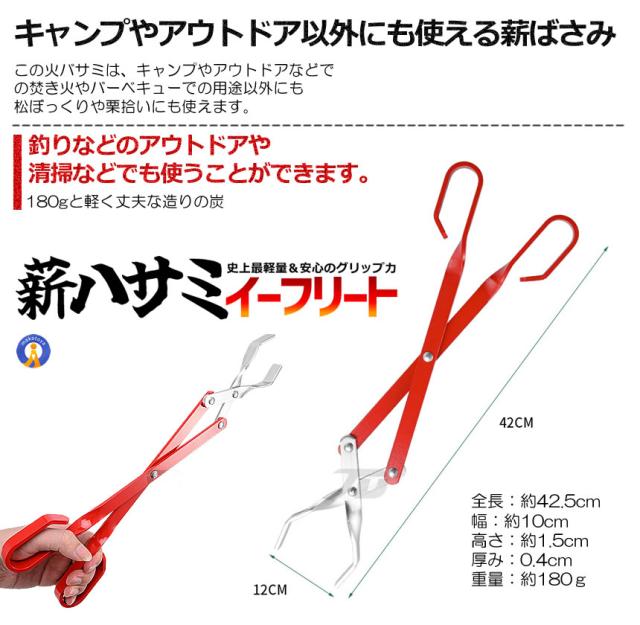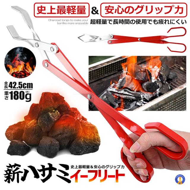 【超軽量な薪ばさみ、長時間の焚き火もOK】軽量ですので、はさみを持った時の負担が少なく、長時 間の使用でも手が疲れません。焚き火と距離を保ちながら薪や炭をくべることができます。
