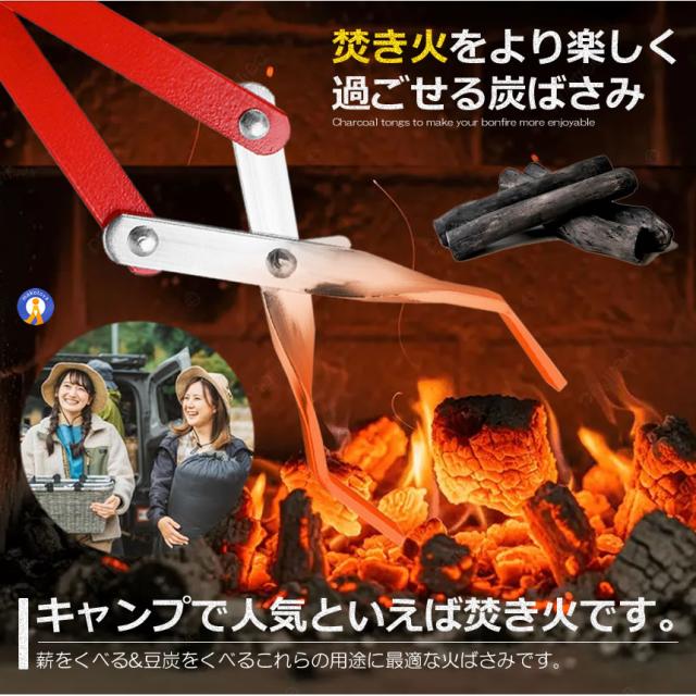 薪ばさみ キャンプ BBQトング 炭ばさみ 火ばさみ ファイヤープレーストング ロング 薪つかみ 炭トング グリル 焚き火トング たき火 用ツール キャンプ アウトドア MAKIHAS