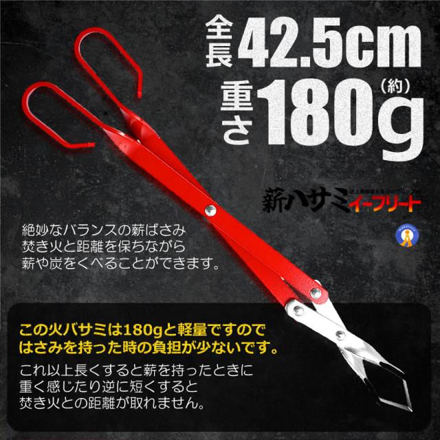 日本最新設計な炭ばさみ】 焚き火をより楽しく過ごせる火ばさみ;全長:約42.5cm 幅:約9cm 厚 み:0.4cm 重量:約180g;火吹き棒と共に火ばさみはキャンプの必需品です。