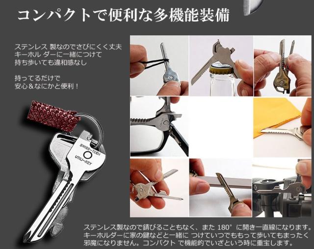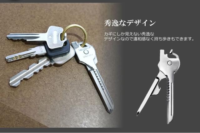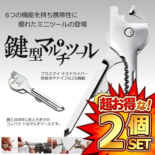 2個セット 多機能 鍵型 ミニ マルチツール 6つの機能 携帯性 キーホルダー キーリング ステンレス ドライバー 栓抜き 便利グッズ 持ち運び シルバーカラー DL-KEYTUUL