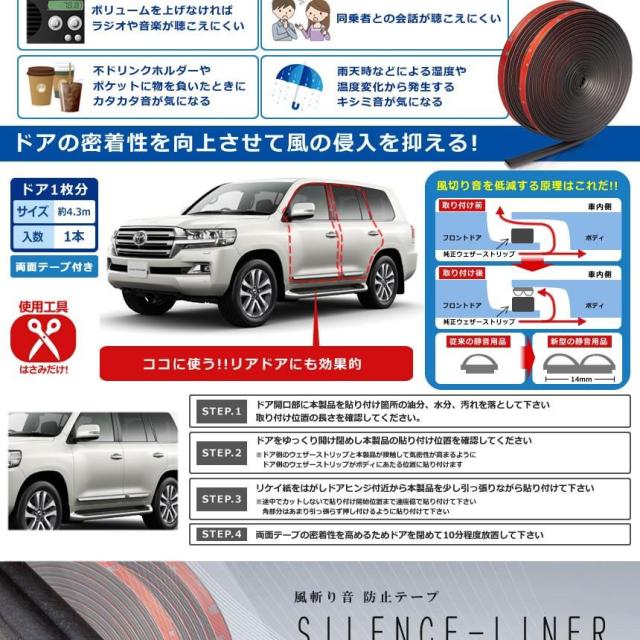 車用 静音ライナー 風切り音 防止 テープ 4.3m ドア リア 簡単 カー用品 外装 パーツ おしゃれ 気密性 車中泊 防止テープ 密着性 ストレス解消 静音 SEIONLINE