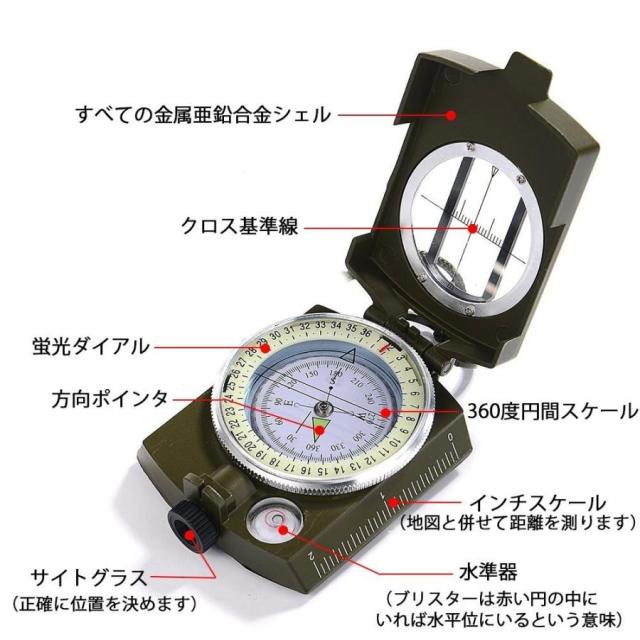 コンパス 方位磁石 方位磁針 高精度コンパス オイルコンパス 軍用コンパス ミリタリーコンパス 蓄光 折り畳み式 軽量 小型 水準器 高精度 キャンプ 探検 登山 防水 蓄光機能 GUNPAS