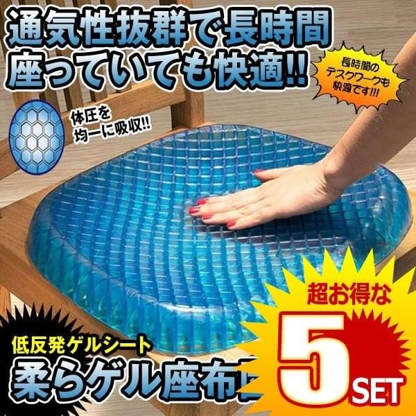 5セット 柔らゲル座布団 ゲルシート 座布団 低反発 ヘルスケア オフィス 椅子用 車用 腰楽 姿勢矯正 美尻 体圧分散 通気性 ゲル素材 ストレス軽減 デスクワーク YAWARAGERU