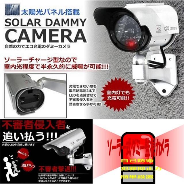 ダミー 監視 カメラ ソーラー 給電 防犯防犯カメラ ソーラー アイボリー LEDライトが自動で発光 防犯 抑止力 屋外 屋内 SOLACAME