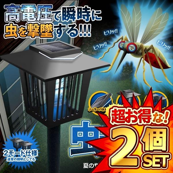2個セット 電撃 殺虫 プラズマ LEDソーラーライト 防水 虫退治 誘蛾灯 UV 光源吸引式 殺虫器 自動点灯 蚊よけ 誘引ライト 蚊取 夏 害虫 駆除 蚊除け 庭 電気代不要 ガーデニング 虫よけ 虫除け 2WAY 防災 災害 MUSHIPURA