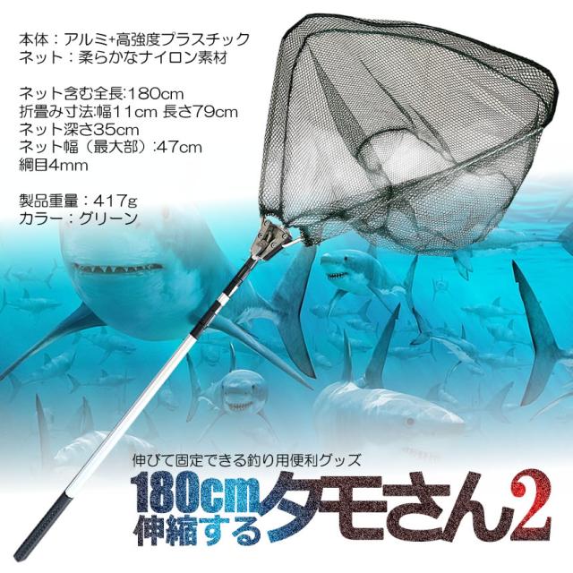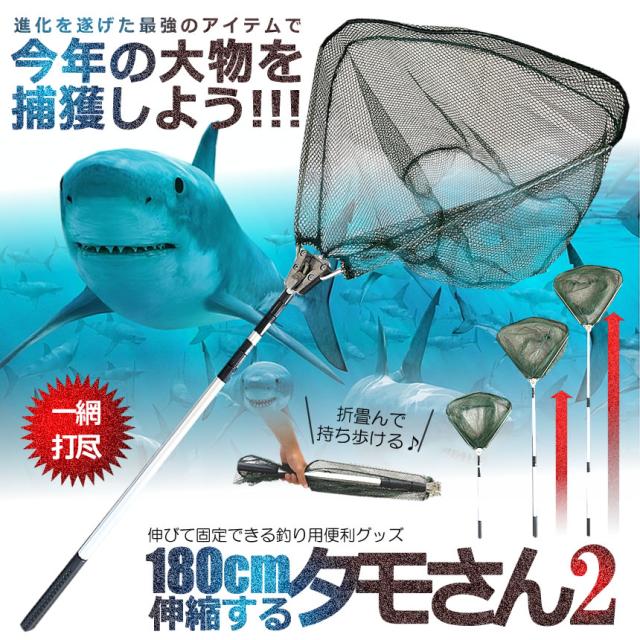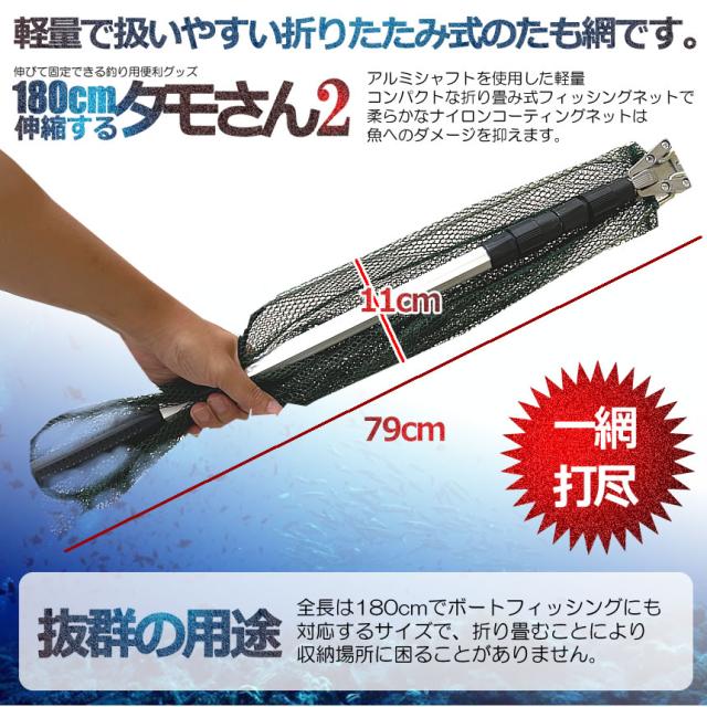 釣り用 伸縮式 タモさん2 180cm タモ網 玉網 すくい網 コンパクト ワンタッチネット 折りたたみ 釣具 渓流 大型 青物 タモ網 タモ釣り フィッシング 漁 TAMOSAN