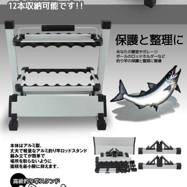 ロッドホルダー 12本 収納 ロッドスタンド 釣り竿スタンド 竿立て アルミ 軽量 保護 釣りグッズ 簡単組立 コンパクト 43×40×31cm 釣りスタ TURISTA-12