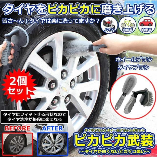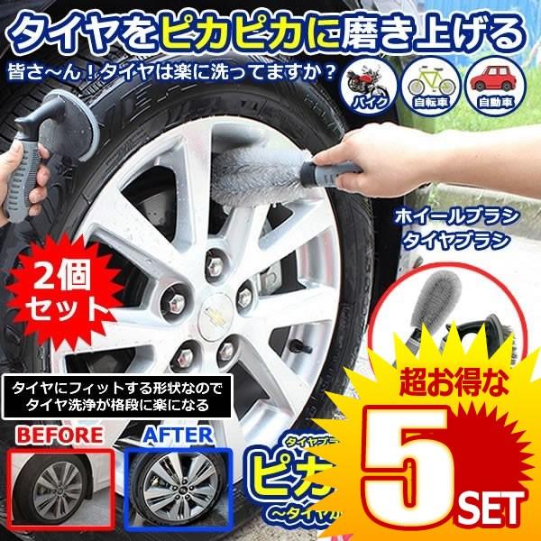 5個セット 車 ホイールブラシ 2点セット 洗車 タイヤ 洗浄 掃除 傷防止 簡単 楽 便利 アイテム グッズ カー用品 バイク 自転車 自動車 車輪 便利グッズ カー用品 PIKABUSOU