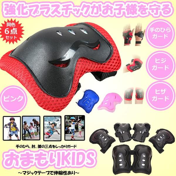 プロテクター キッズプロテクター 子供用 怪我防止 ピンク 6点セット 自転車 一輪車 スケボー ローラースケート 手首 肘 膝 お守りKIDS OMAKIDS-PK