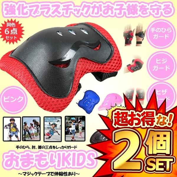 2個セット プロテクター キッズプロテクター 子供用 怪我防止 ピンク 6点セット 自転車 一輪車 スケボー ローラースケート 手首 肘 膝 お守りKIDS OMAKIDS-PK