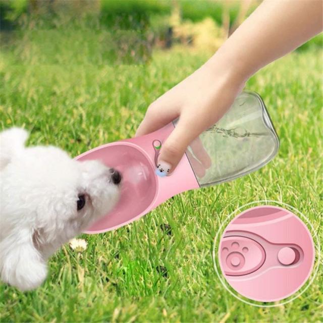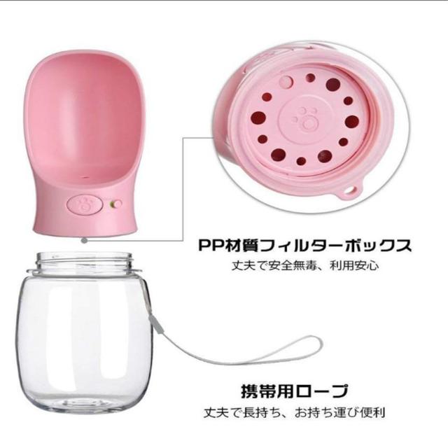 5セット 給水器 犬 ボトル 携帯用 ピンク 350ml ペット ウォーターボトル 水槽付き 水漏れ防止 BPAフリー 犬猫 散歩 旅行用品 携帯便利 衛生的 軽量タイプ WATER FOUTAIN