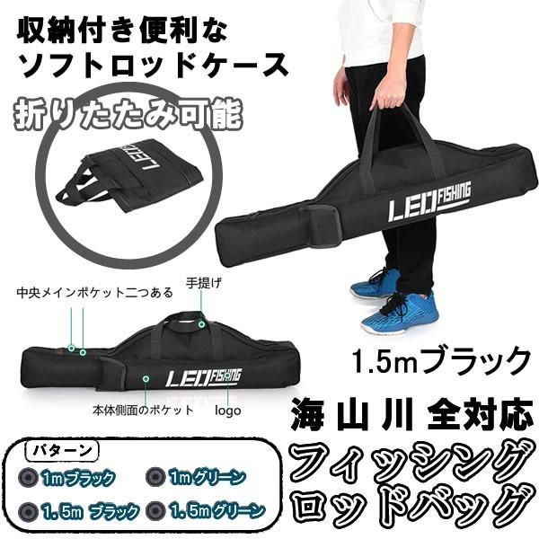 フィッシングロッドケース ロッドバッグ ロッドケース 1.5mブラック 畳める ソフトケース 釣り フィッシング 釣り竿 釣り竿ケース 釣りバッグ FRCASE-15-BK