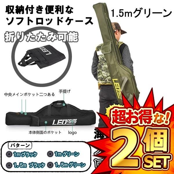 2個セット フィッシングロッドケース ロッドバッグ ロッドケース 1.5m グリーン 畳める ソフトケース 釣り フィッシング 釣り竿 釣り竿ケース 釣りバッグ FRCASE-15-GR