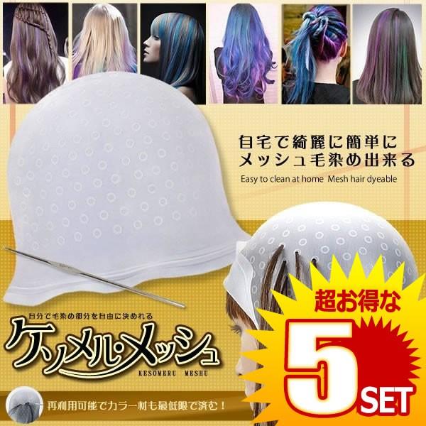 5個セット メッシュキャップ ヘアカラー 毛染め 髪染めキャップ ハイライトキャップ ブリーチ カラーリング カラーリング 半透明 自宅 毛染 簡単 再利用可能 ケソメル・メッシュ LEOMESSI