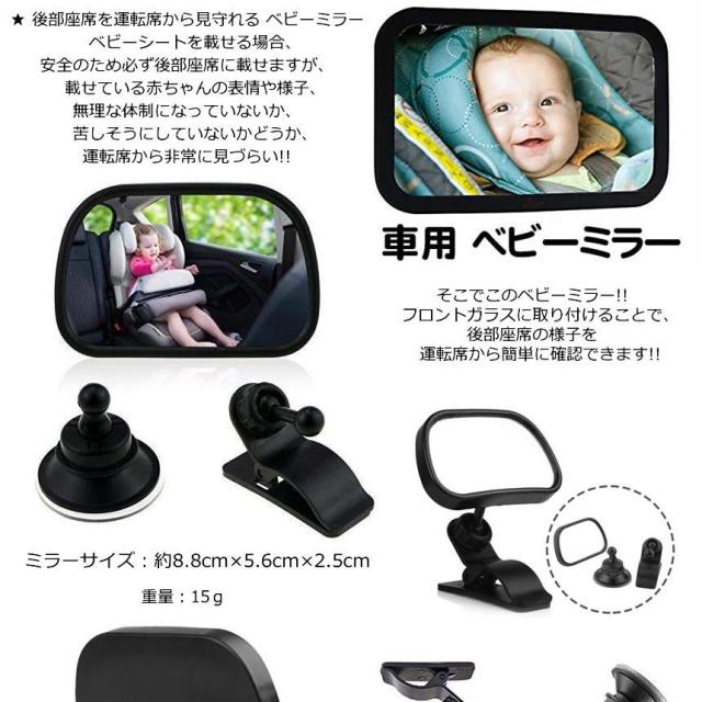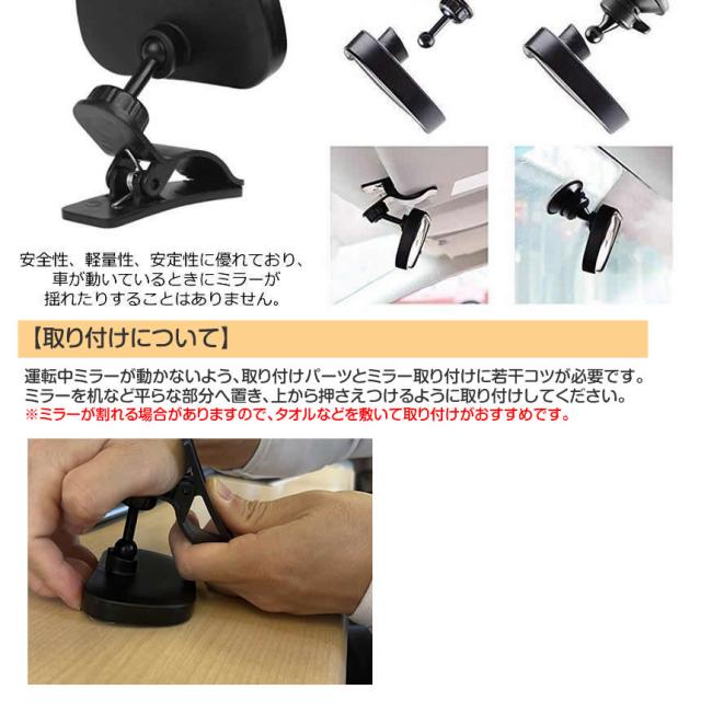 2個セット ベビーミラー 車 チャイルドシート ミラー 車内 運転 子供 赤ちゃん 貴重品 確認 見守り 後部座席 簡単 角度調整 安全 安心 安定 軽量 吸盤 クリップ 見えやすい MIRAKIDS