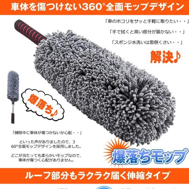ハンディモップ 伸縮可能 吸着性 洗車 モップ マイクロファイバー ダスター 傷防止 軽量 伸びる 掃除 バク落ち お掃除用品 車お掃除用品 水洗い可能 車内 車外 BAKUMOP
