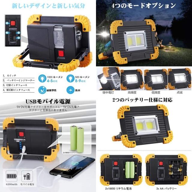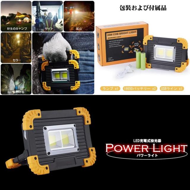 LED 充電式 投光器 20W ポータブル 作業灯 緊急照明 屋外照明 ワークライト usb 充電式 超高輝度 防水仕様 夜間 キャンプ 登山 お出かけ時 500m POWLIGT