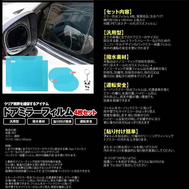ユニバーサルデザインのバックミラー保護フィルム