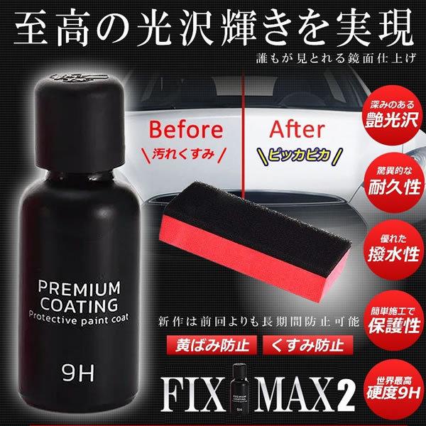 フィックスマックス2 車コーティング剤 液体セラミックコート 30ml 光沢 輝き ガラス硬化剤 ガラスコーティング スポンジ付 黄ばみ くすみ 防止 対策 自動車 BLACKFIX