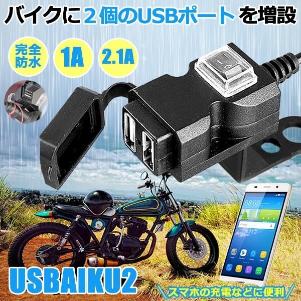 バイク USB電源 充電器 完全防水 3.1A USB 2ポート 防水 スマホ スマートフォン iphone 充電 ツーリング 便利 パーツ 防水設計 雨の日 スマホ ナビ USBAIKU2