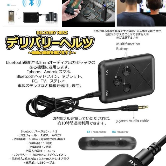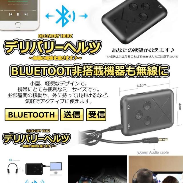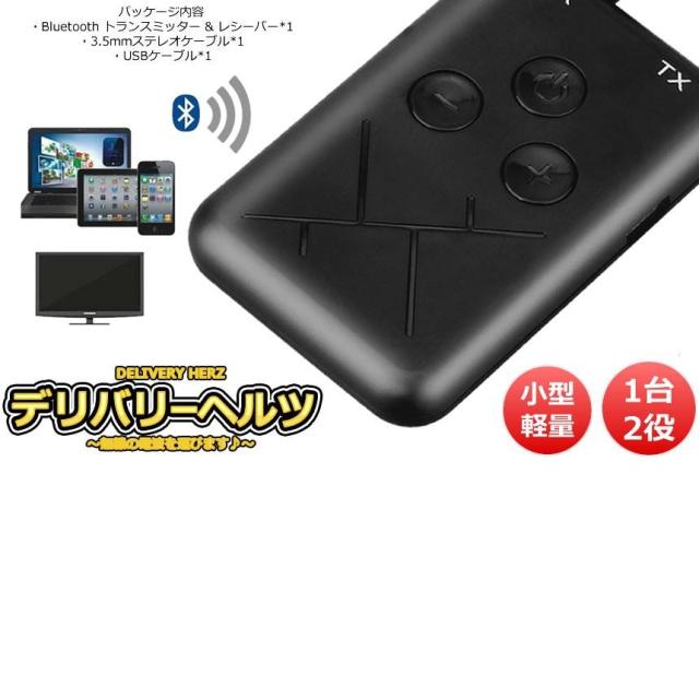 デリバリーヘルツ Bluetooth トランスミッター 1台2役 レシーバー 送信 受信 無線 ワイヤレス スマホ テレビ 音楽 送信機 受信機 ブルートゥース 音楽 DELIHEL
