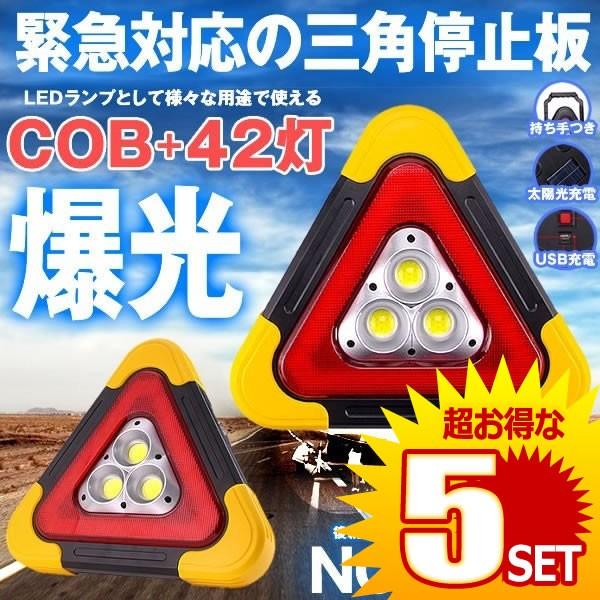 5個セット 三角 停止板 車用 LED 点滅 表示板 事故 故障 非常時 反射板 昼夜間兼用型 追突 防止 作業灯 ライト 非常灯 災害 震災 避難所 夜間 明るい カー用品 NOTHING