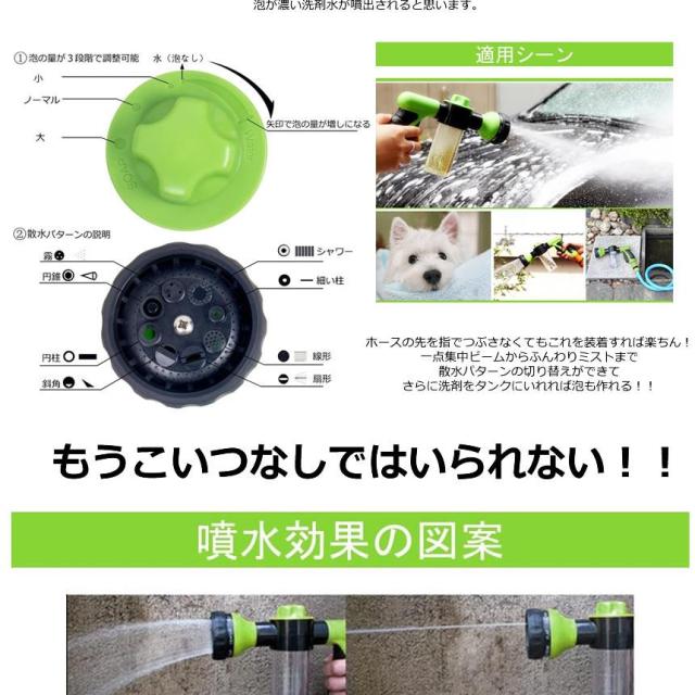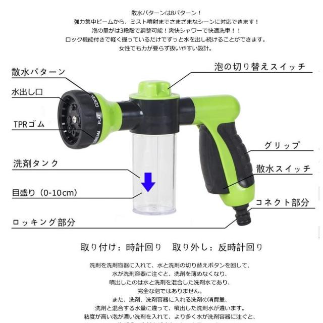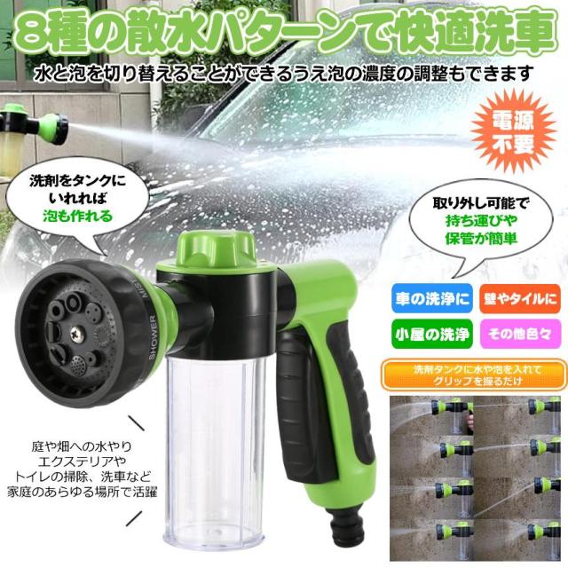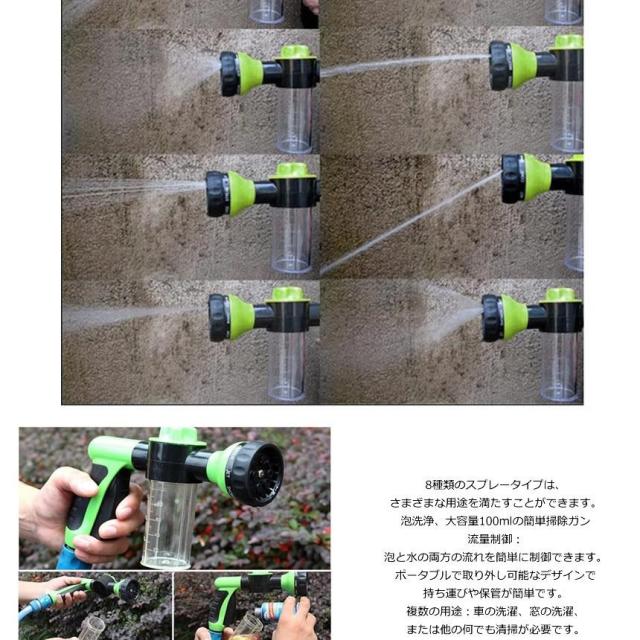 フォームガン 洗車 ノズル 掃除 散水パターン8種 泡量 3段階 洗剤タンク付き メンテナンス 洗車ガン ガーデニング 自動車 バイク 掃除 カーケア 掃除グッズ YASGUN
