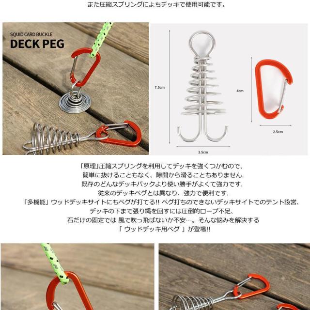 ウッドデッキサイトにもペグが打てる!! ペグ打ちのできないデッキサイトでのテント設営、デッキの下まで張り縄を回すには圧倒的ロープ不足、石だけの固定では 風で吹っ飛ばないか不安…。そんな悩みを解決する「 ウッドデッキ用ペグ 」が登場!!