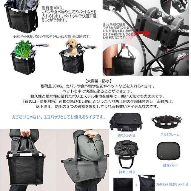自転車 かご エコバッグ トートバック 大容量 脱着式 前かご バスケット 折りたたみ 防水 取り付け 簡単 耐荷重10KG 折り畳み自転車 ペット 盗難防止 ECOKAGO