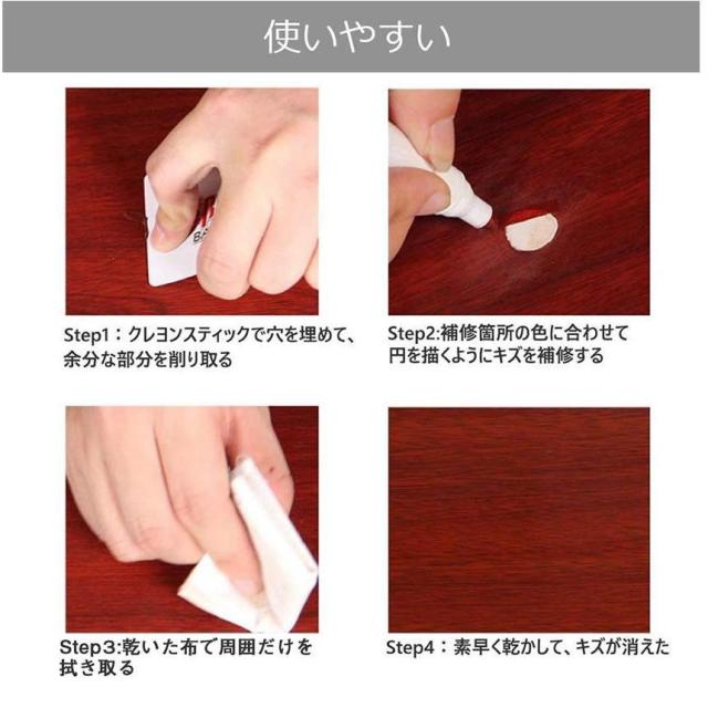 トリム、キャビネット、ドア、フレーム、ベッドなど様々な木材の傷を瞬時にカバーします。