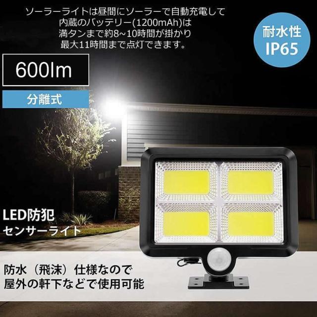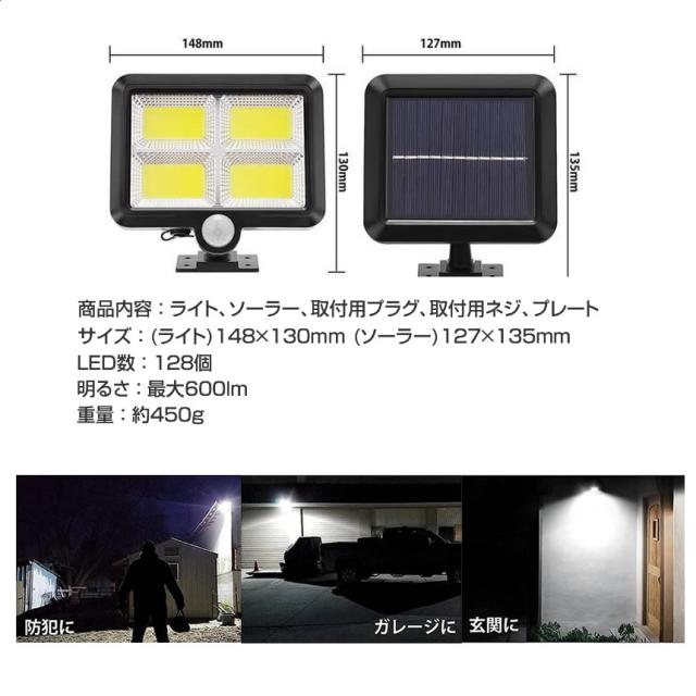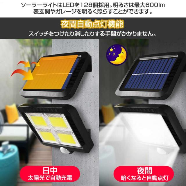 ソーラーライト 分離 センサーライト 128LED 屋外 壁掛け 高輝度 5mコード付き 人感センサー 太陽光充電 モーションセンサー 玄関 駐車場 防犯 庭 ガーデン防災 災害 BUNBUN