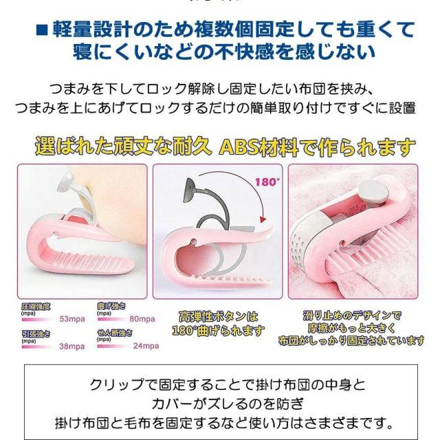 ■クリップで固定することで掛け布団の中身とカバーがズレるのを防ぎ、掛け布団と毛布を固定するなど使い方はさまざまです。