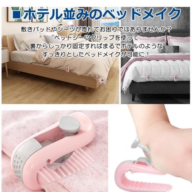 敷きパッドやシーツが寄れてお困りではありませんか?ベットシーツクリップを使って裏からしっかり固定すればまるでホテルのようなすっきりとしたベッドメイクが可能に!