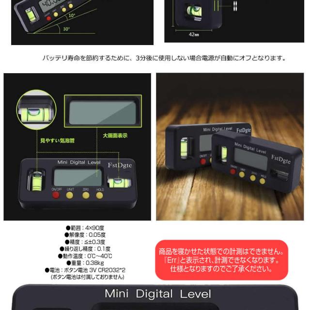 2個セット デジタル角度計 水平器 デジタル マグネット ミニ 水平機 デジタル表示 傾斜計 手のひらサイズ ホールド機能 ゼロセット機能 大画面 液晶 測定 組み立て SUBESOKU