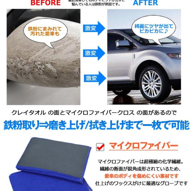 洗車グローブ 鉄粉除去 洗車 マイクロファイバー タオル 水あか 虫取り カーケア 汚れ 拭き取り 下地処理 簡単 クレイタオル 拭き上げ クロス 洗車道具 洗車グッズ FUNJYOKYO