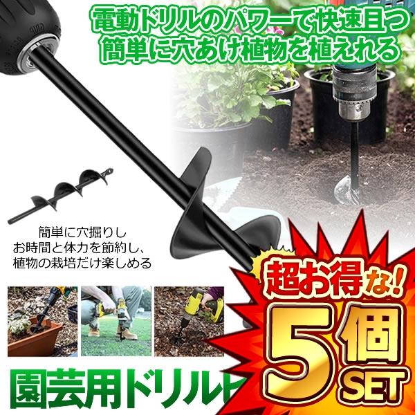 5個セット アースドリル 園芸用 DIY 苗植え 穴掘り器 庭 野菜 花 植える 植樹 杭打ち ドリルビット 草取り エンジンオーガー用 替えドリル ガーデン用具 黒 ENVY