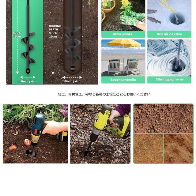 3/8"の規格で、殆どの家庭用電動ドリルなどに適用。電動ドリルのパワーで快速且つ簡単に穴あけ、植物を植えることができ、体力も時間も節約できる。