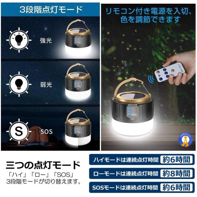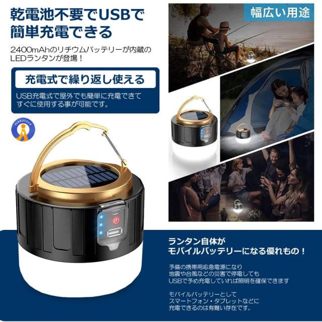 LEDランタン スマホ充電 リモコン ソーラーランタン キャンプランタン 3モード 明るい 2400mAh 防水 スマホ 充電 災害 防災 アウトドア グッズ 非常時 小型 携帯 SINRAN