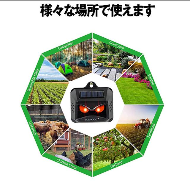 5個セット 動物撃退器 ソーラー ライト点滅 猫よけ 鳥よけ 防犯 ネズミ コウモリ イノシシ 防水 太陽光充電 フラッシュライト 獣害 キャンプ場 果樹園 猫除け 害鳥駆除 MAJICAT
