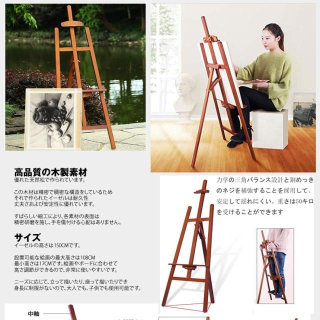 5個セット イーゼル スタンド ナチュラル 胡桃色 木製イーゼル 150CM 高さ調節可能 三脚 デッサン おしゃれ アート 美術 芸術 スケッチ 写生 看板 絵画 カフェ 展示 EZELA-NA