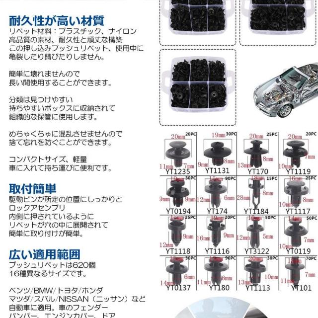 1240個セット バンパークリップ トリムクリップ カー用品 外装グッズ 自動車フェンダー 16種類 車用リベット リベットセット トリムファスナー リテーナ カー用品 PANKURI