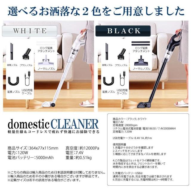 5個セット コードレス 掃除機 ハイパワー 延長ノズル 軽量 USB充電 ハンディ ロング クリーナー アタッチメント ブラシ 吸引力 高性能 掃除 ハンディ 吸引力 強力 パワフル CODEWHKI