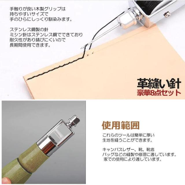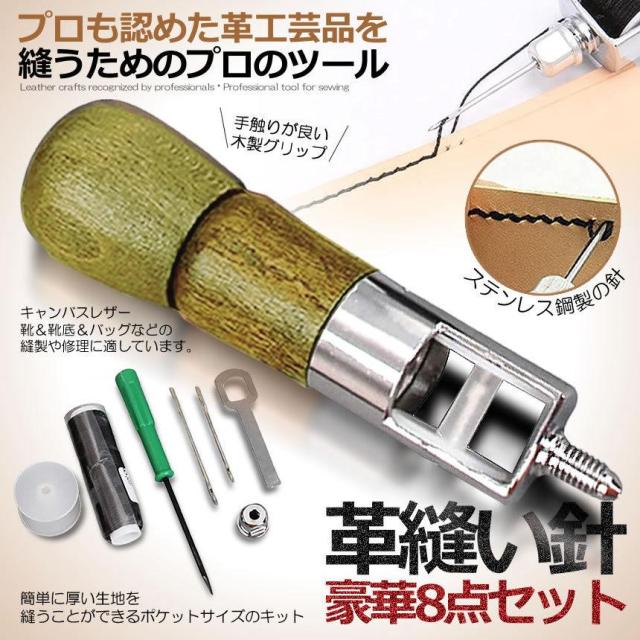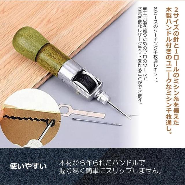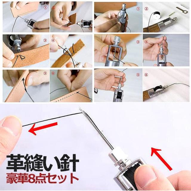 革縫い針セット 片手ミシン 8点セット 革縫い レザークラフト 手縫い機 ステッチャー 針2本入り 糸通し器 革工具 ハンドメイド レザークラフト用 縫製用 MIMISISI