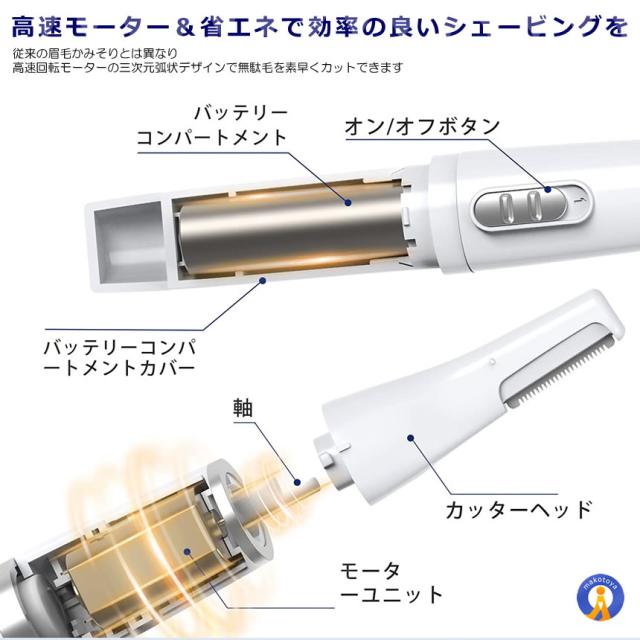高速回転モーターの三次元弧状デザインで無駄毛を素早くカットできます