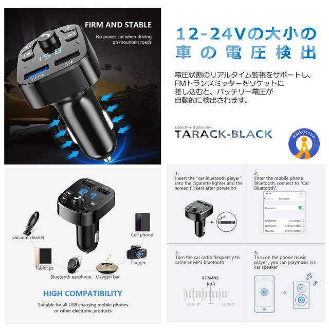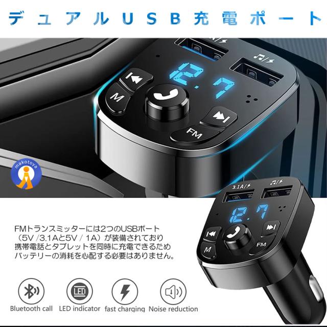 5個セット FMトランスミッター Bluetooth 5.0 USB 2ポート 12V 24V 対応 急速充電 ハンズフリー通話 ワイヤレス シガーソケット ドライブ 無線 プレゼント SISOKEO